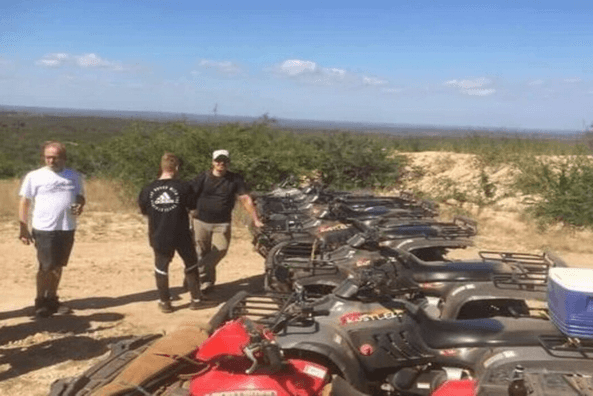 Gæster kører ca 20 min ud til terrænet, hvorfra turene tager deres udgangspunkt under ledelse af en lokal guide. Han er i øvrigt også en Majbritt mødte i sit 1. år i Sydafrika, og mange af hendes tidligere gæster har drønet hans jord rundt på quads. Både børn og voksne, seniorer og let handicappede.